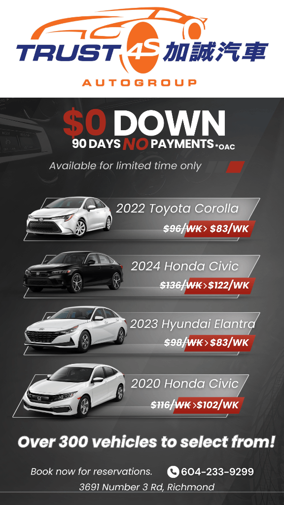 Trust Auto is offering a limited-time $0 down, 90 days no payment event with unbeatable weekly prices on popular models. Over 300 vehicles available at our Richmond dealership.
